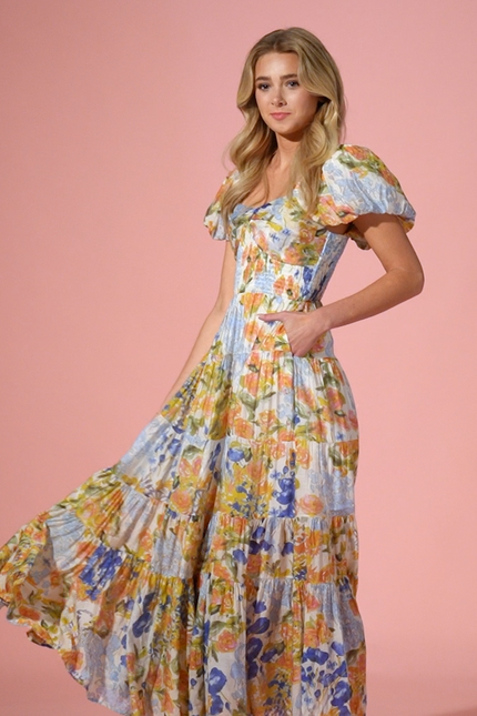 Soft, floaty, and made to twirl. This retro-inspired floral maxi gives you just the right mix of sunshine and romance, with puff sleeves and a breezy fit that’s perfect for market strolls or weekend getaways.