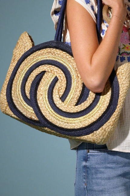 This handcrafted tote pairs natural and blue jute in a timeless circular pattern, bringing a fresh look to every outing. Whether you’re tackling errands or heading to a special occasion, it delivers both flair and functionality. Sturdy handles and a spacious interior keep essentials organized, while the striking swirl detail turns heads wherever you go. Embrace an easygoing style that transitions seamlessly from busy days to relaxed evenings.