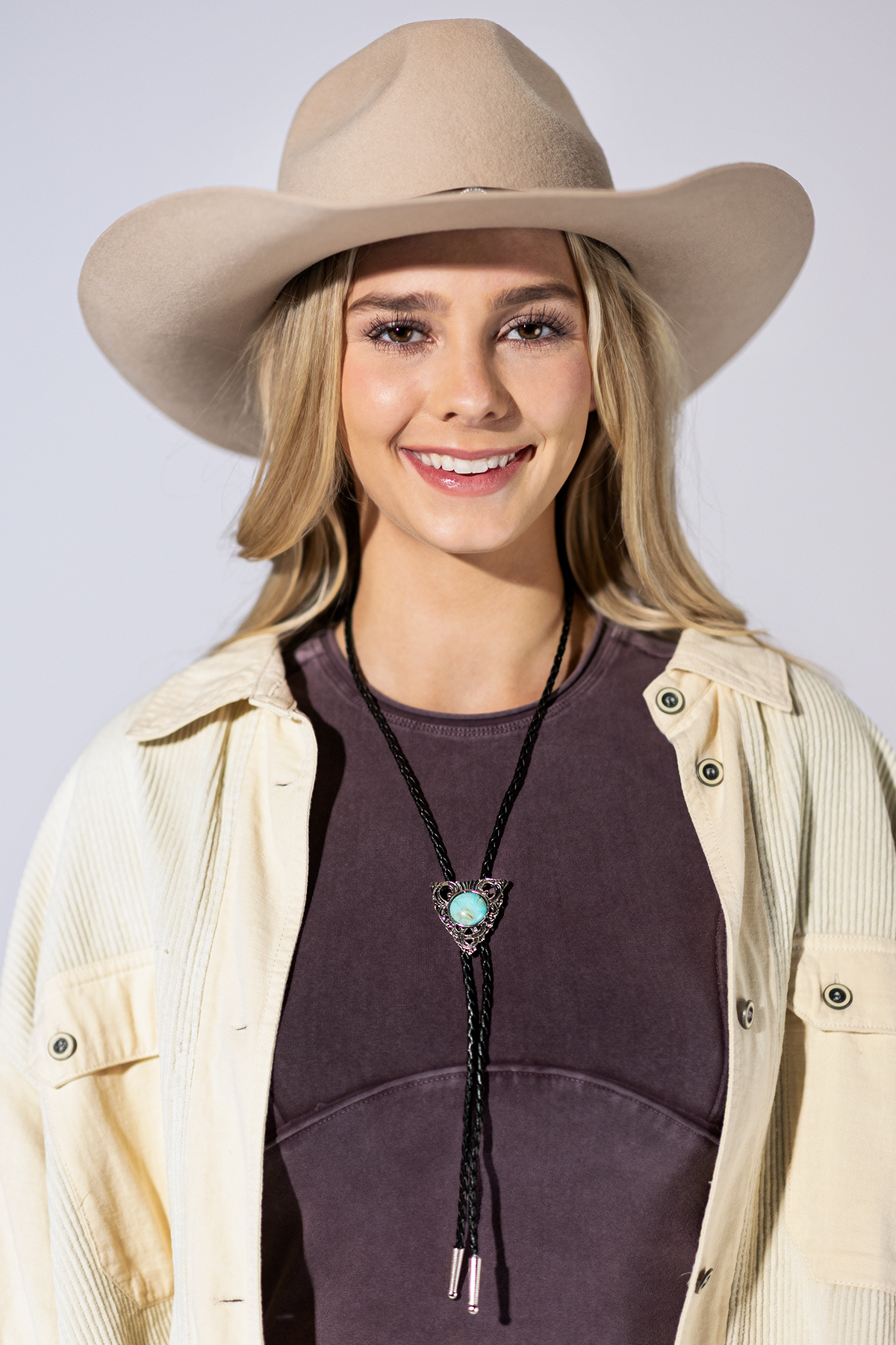This bold, arrowhead-shaped bolo tie captures the spirit of the frontier with its intricate silver-toned detailing and striking center stone. Designed for the modern cowgirl with a taste for vintage edge.