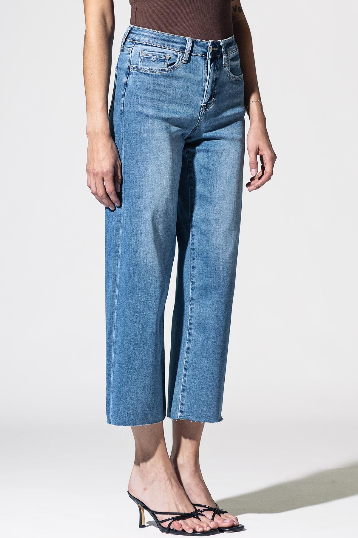 A raw hem, cropped wide-leg fit, and structured high-rise waist give the Greenlight Jean that 90s minimalism you can style a million ways. Soft comfort stretch denim meets city-girl confidence in a silhouette that feels equal parts then and right now.