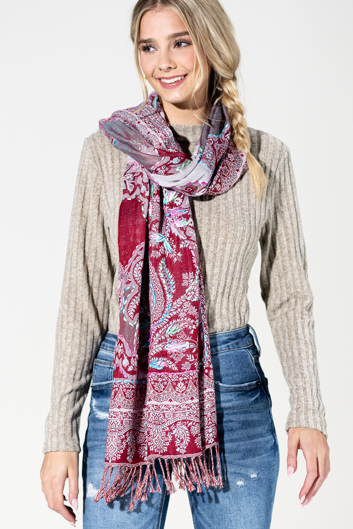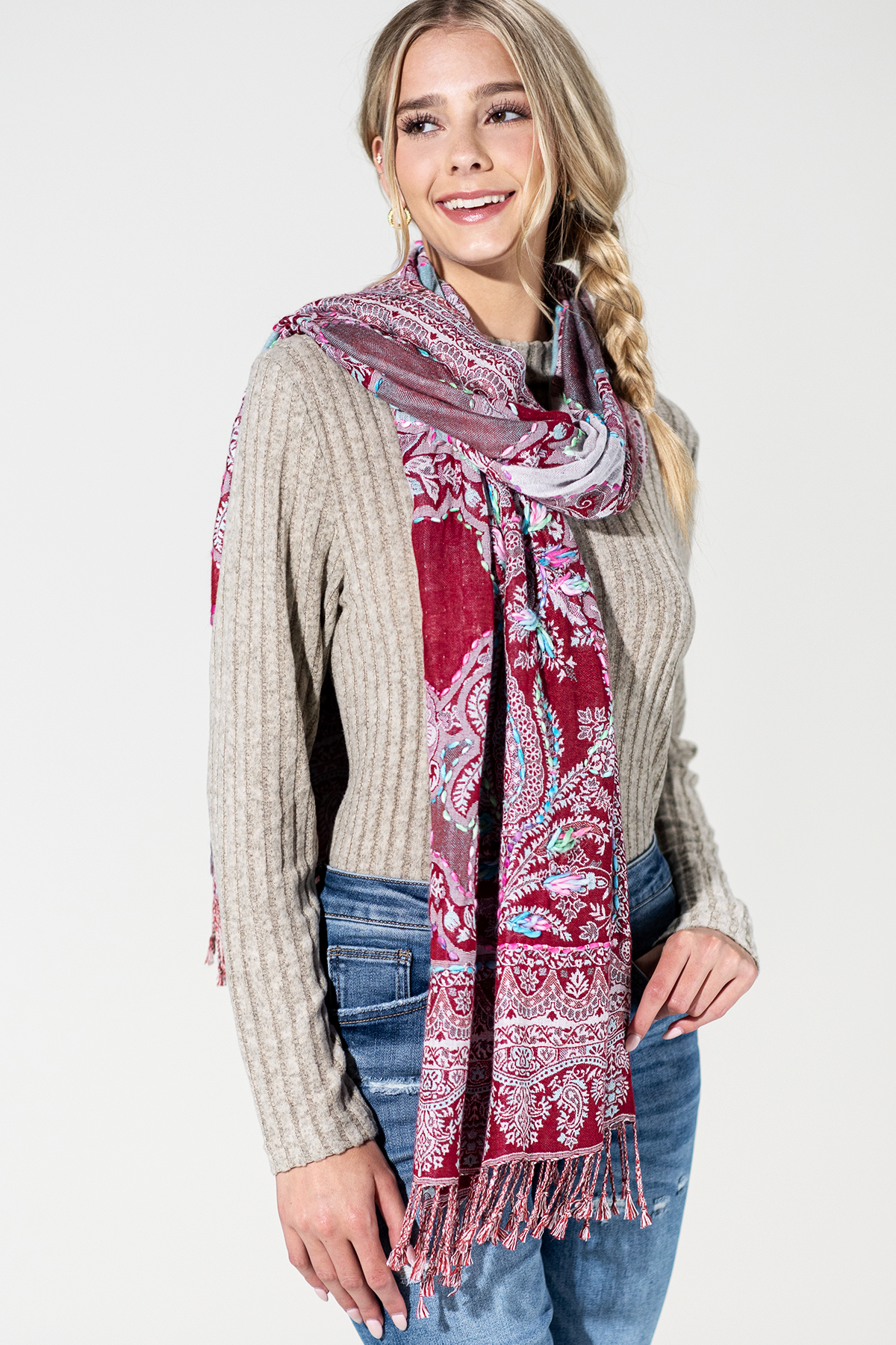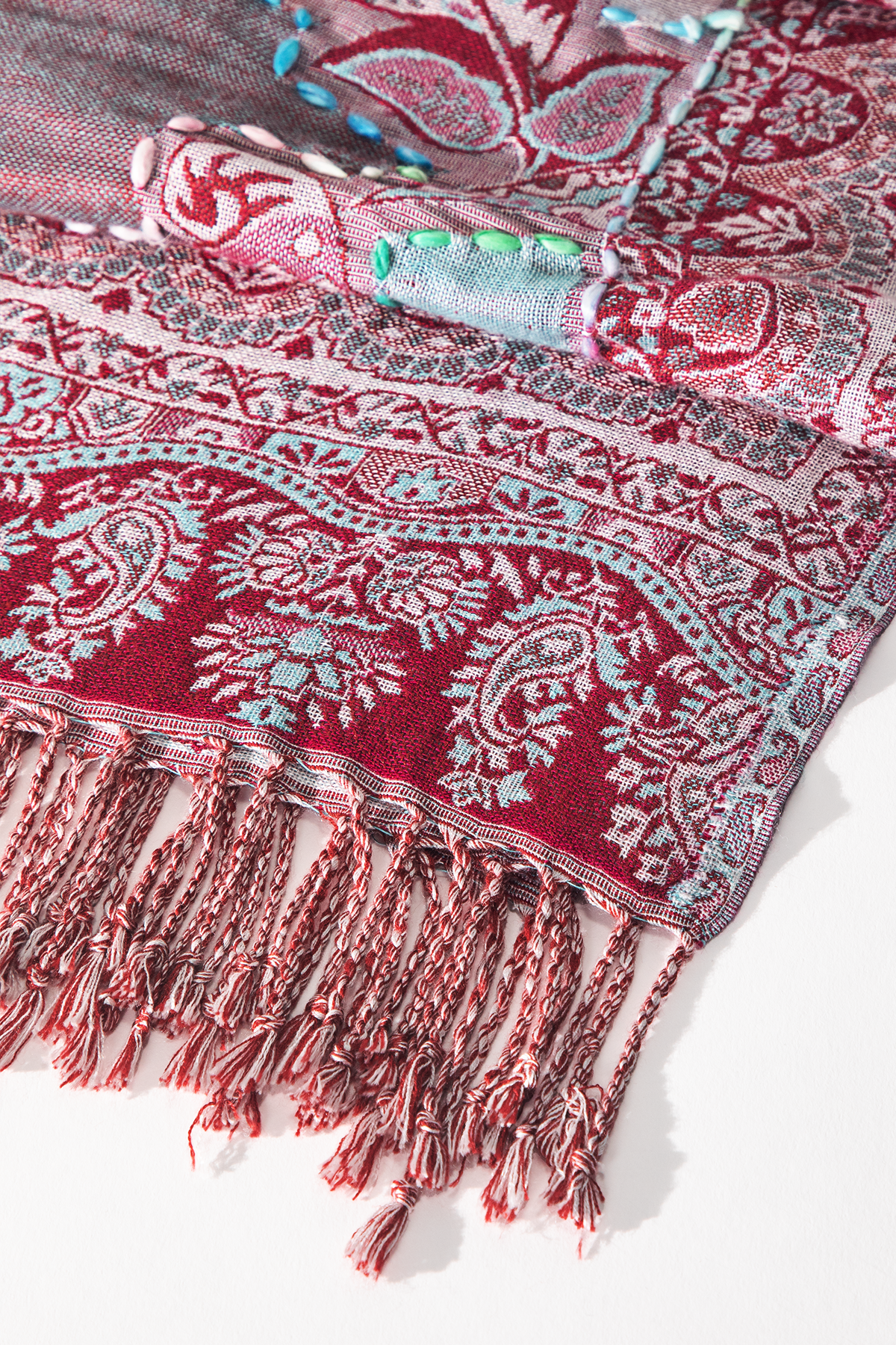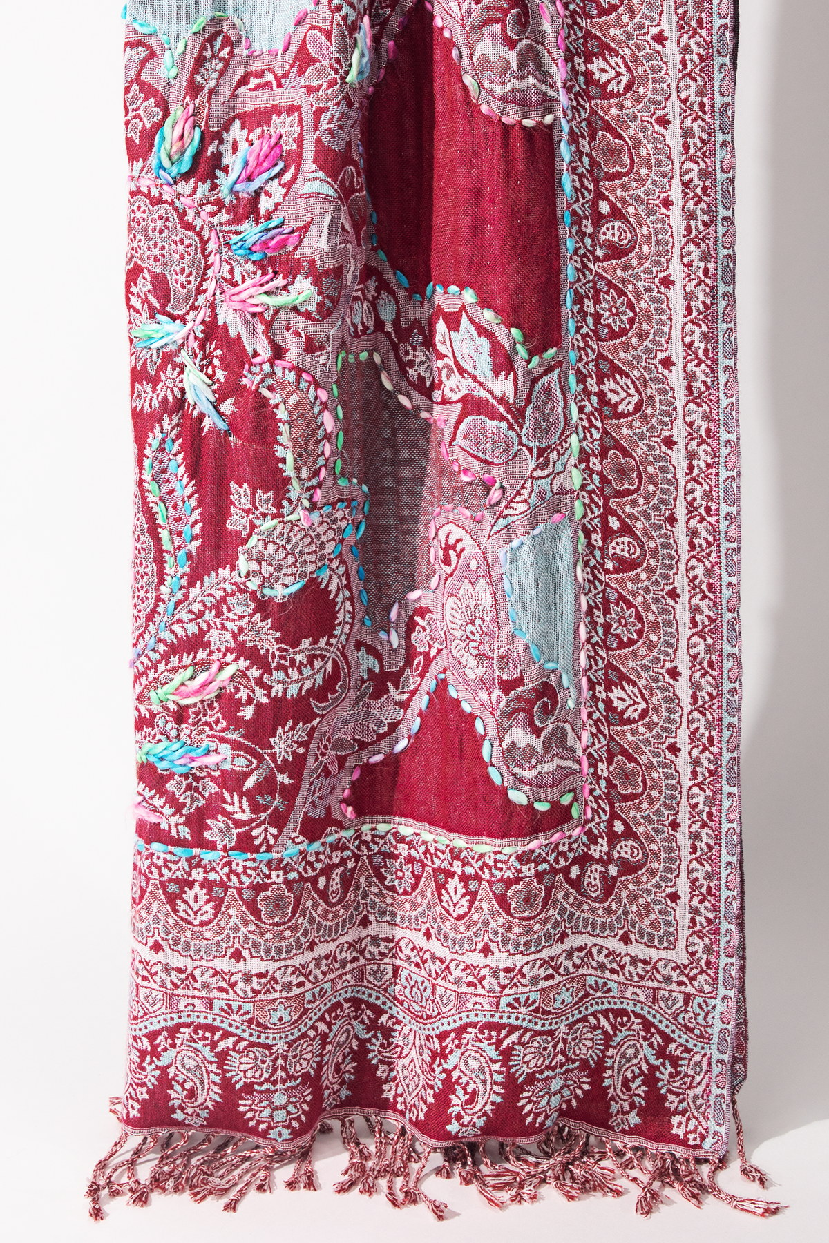 A refined expression of artisan craft. The Helena Embroidered Scarf showcases intricate embroidery and textured weaving, finished with a classic fringe edge. Lightweight and soft with a touch of old-world charm, it adds warmth and quiet beauty to any winter look.