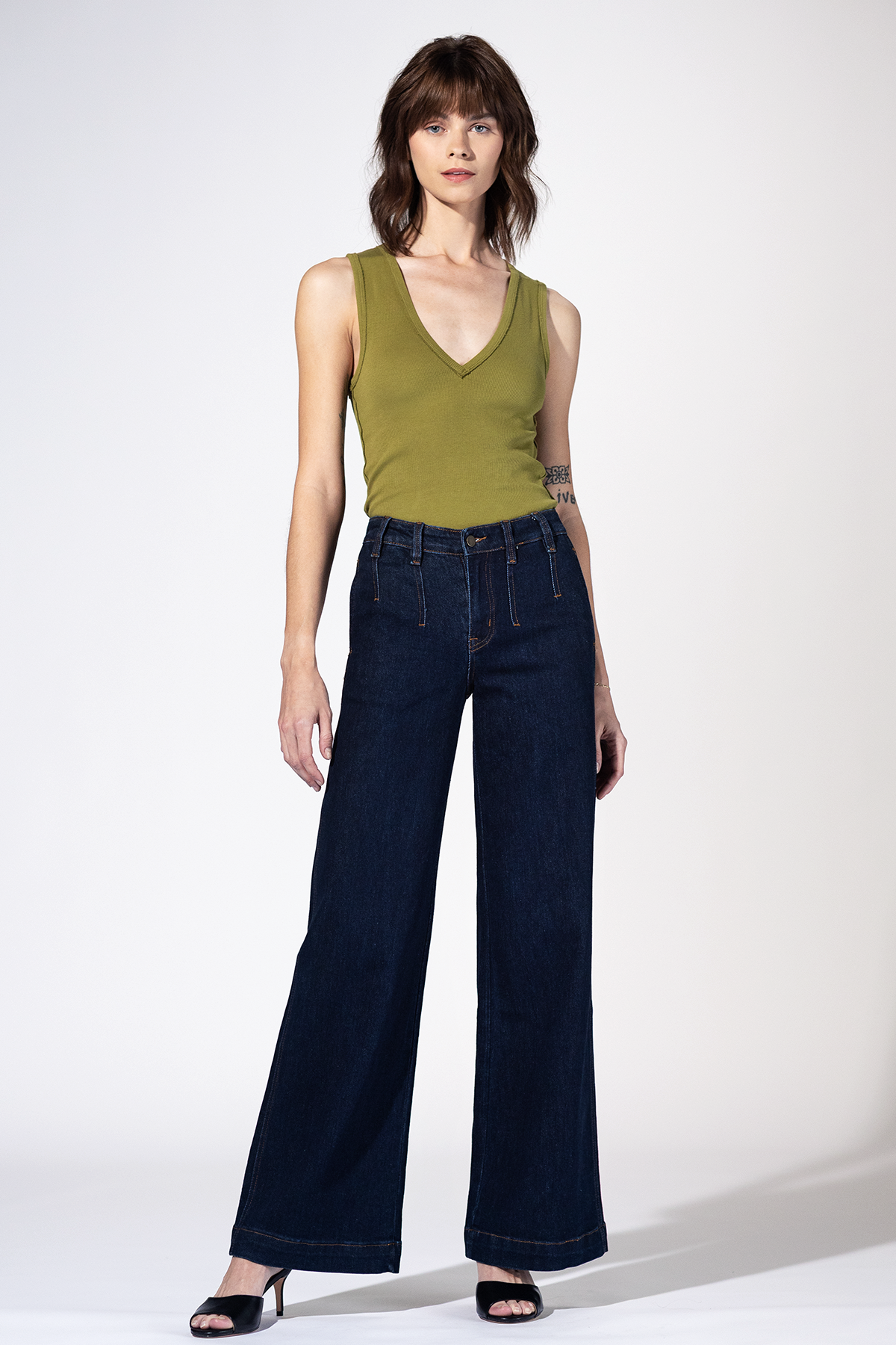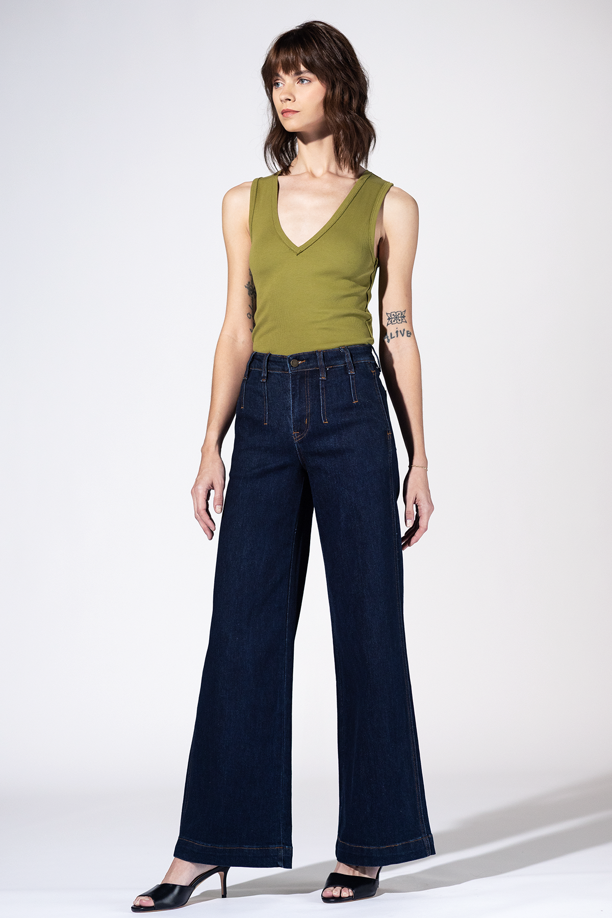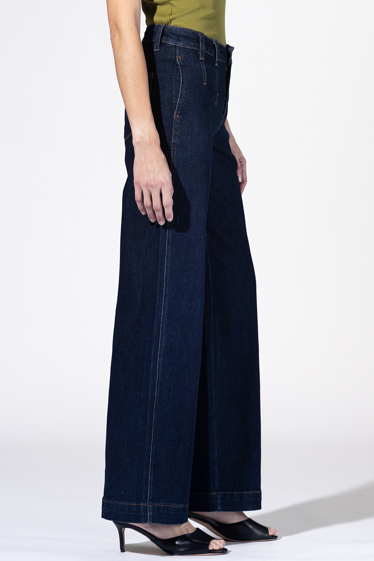 Step into that timeless 70s ease with the Canyon Vista Wide Leg Jeans . A modern revival of vintage denim charm. Cut from structured, non-stretch denim in a deep indigo wash, these jeans feature subtle dart detailing at the waist for a flattering shape and a dramatic wide leg for effortless flow. Perfectly tailored yet relaxed, they pair beautifully with tucked blouses or knitwear for that retro-meets-refined look.