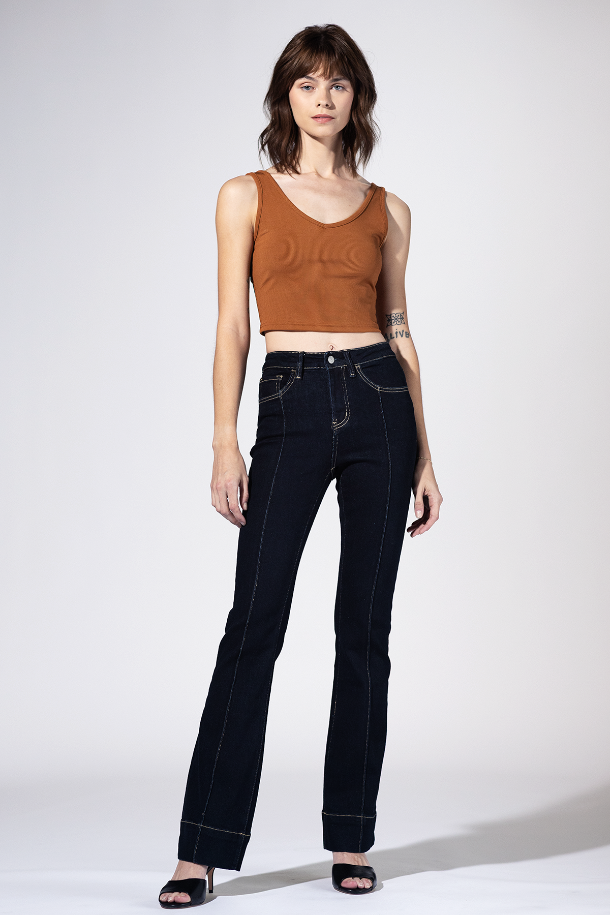 A modern nod to 70s tailoring. The Selma Bootcut is cut from soft, sculpting denim that hugs through the hips and flares with refined ease. The trouser hem and deep indigo wash give it that polished, elevated feel. Perfect for pairing with crisp blouses or cozy knits.