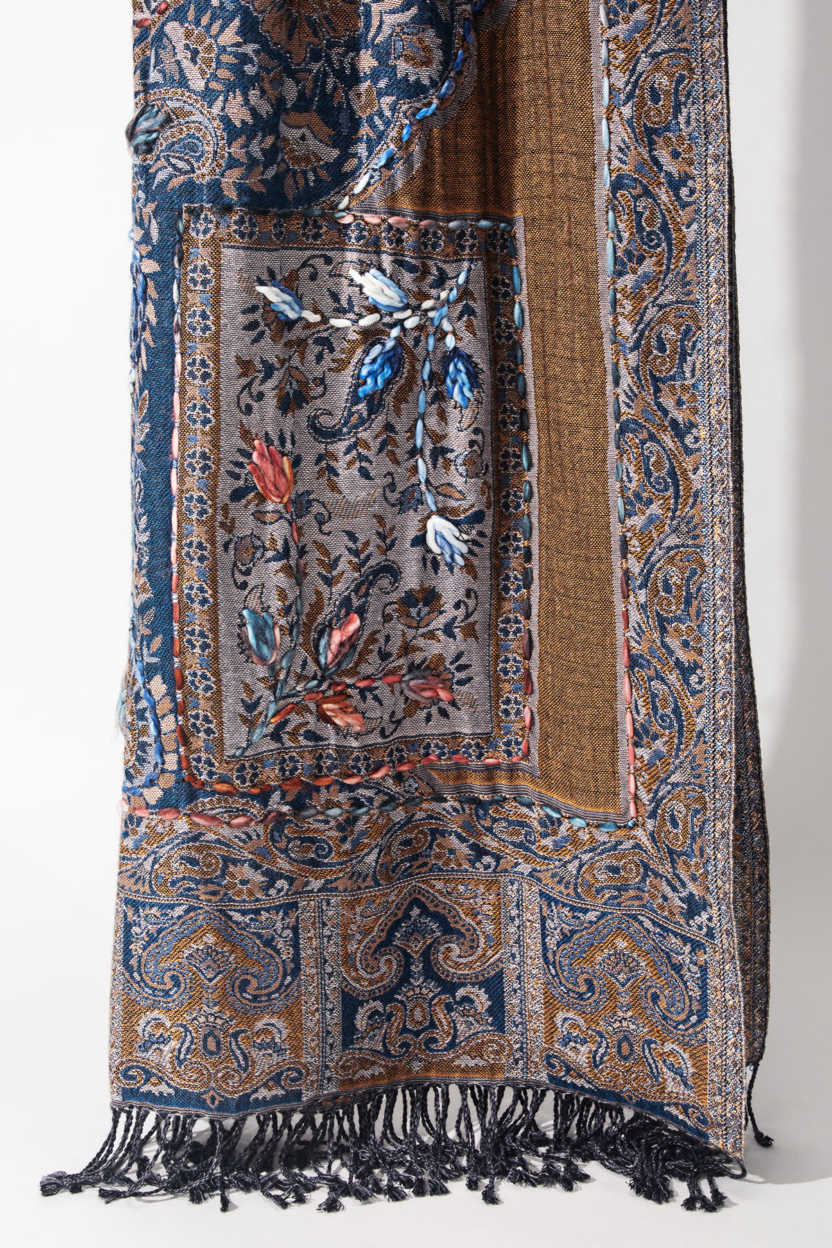 Timeless craftsmanship with a modern edge. The Jackson Embroidered Scarf features an intricate jacquard weave enriched with detailed embroidery and a softly fringed finish. Hand-stitched accents add depth and texture, creating a piece that balances artisan tradition with effortless sophistication.