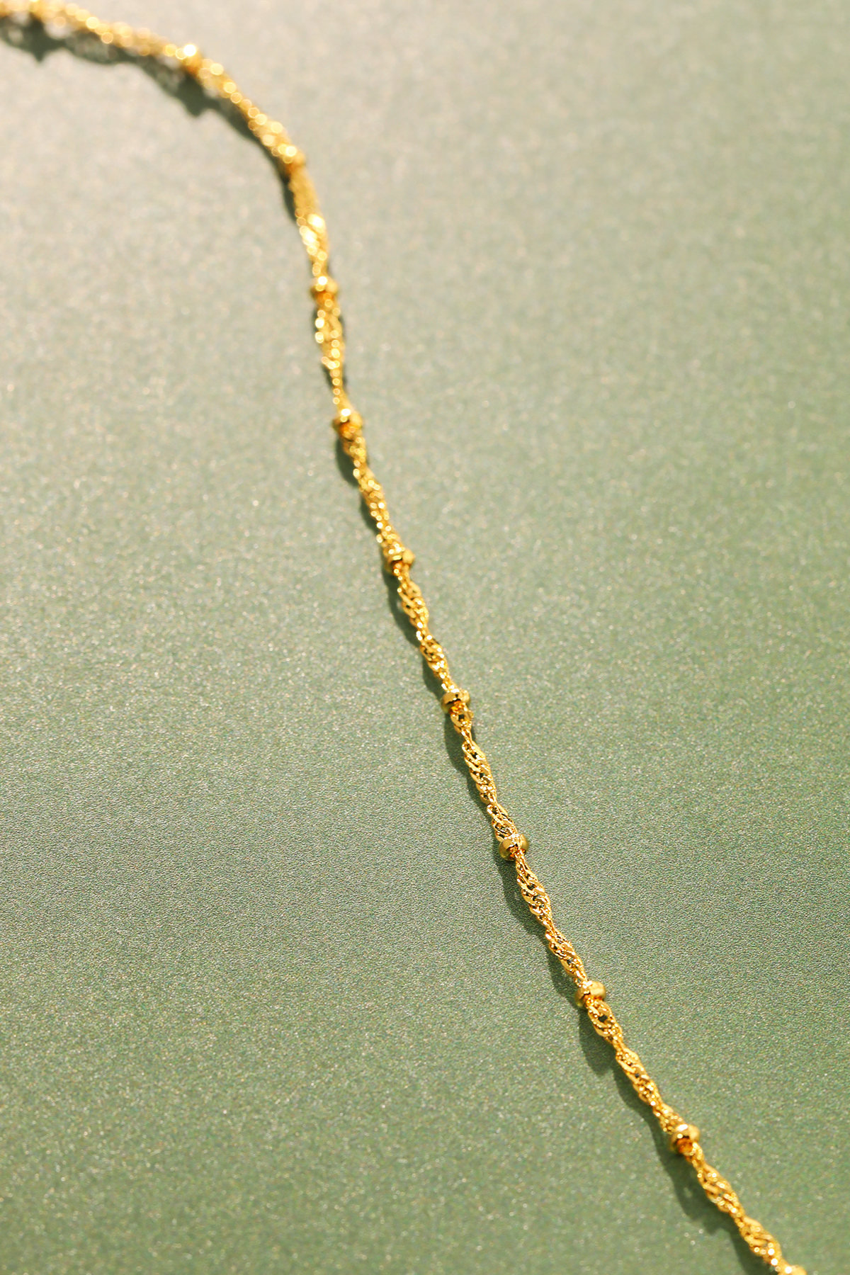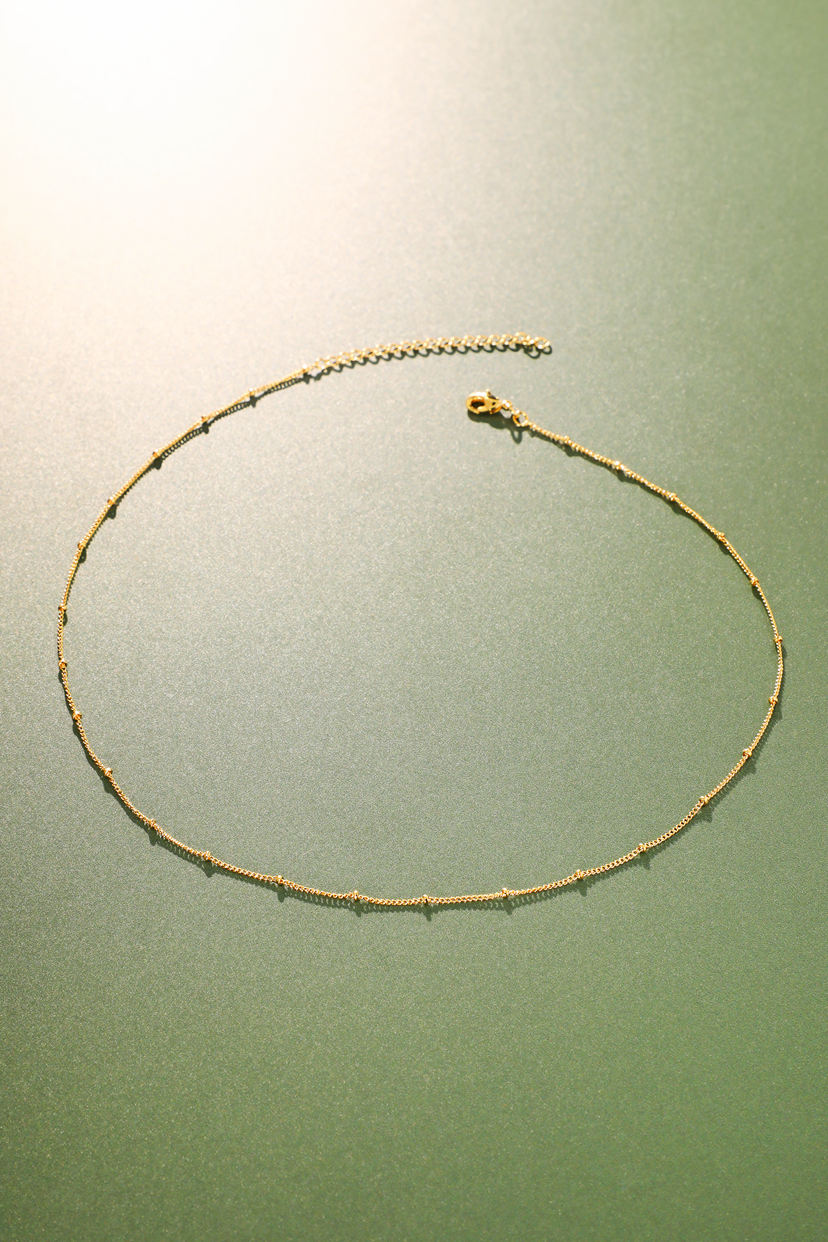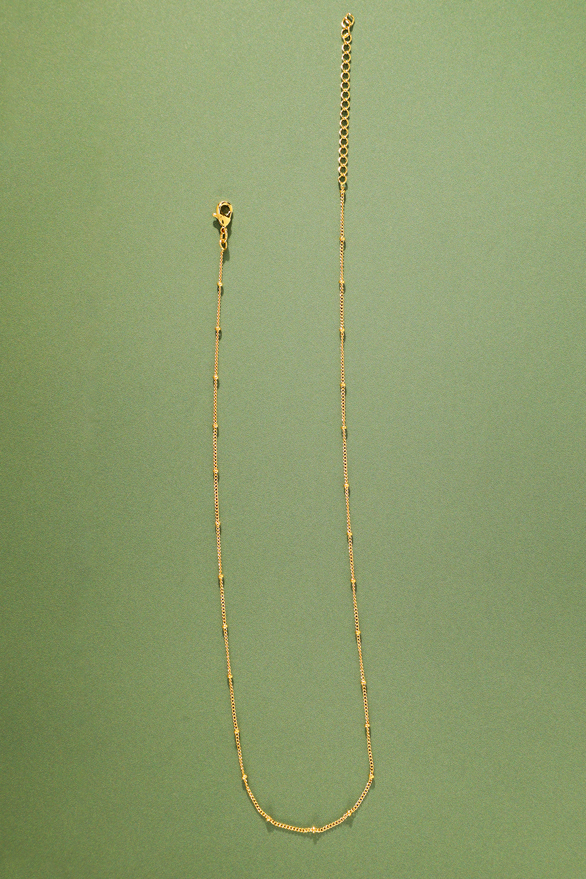 Polished links and delicate beaded accents bring subtle dimension to this lightweight gold chain. Hypoallergenic and ideal for layering or wearing solo.