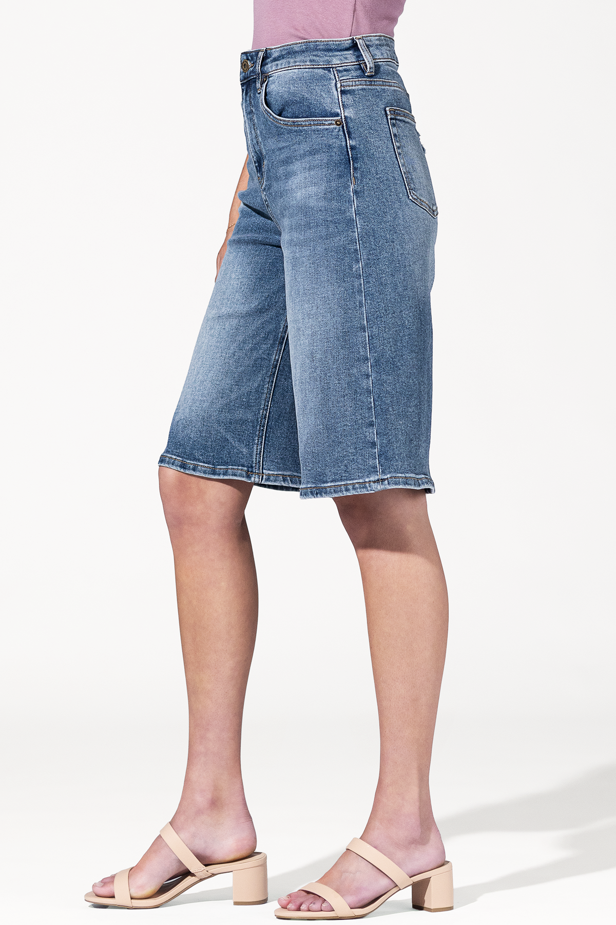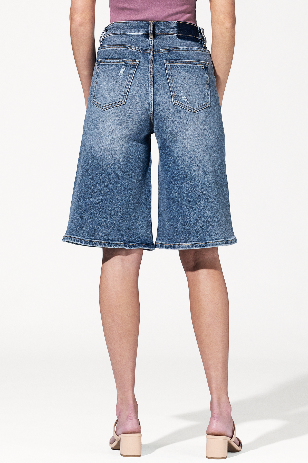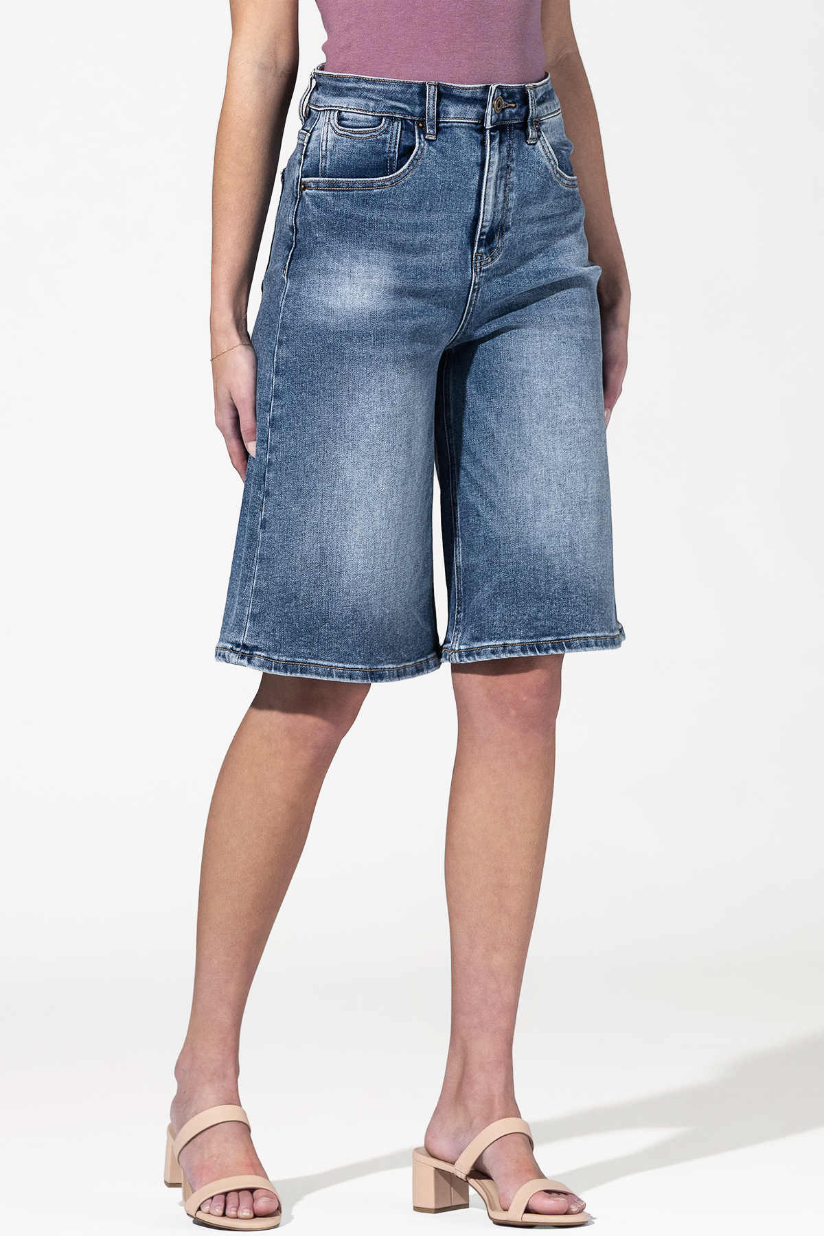 Relaxed, mid-wash denim with an unapologetic wide leg and longline cut. High-waisted and loose in all the right places. This is the cool-girl short that feels vintage without trying.