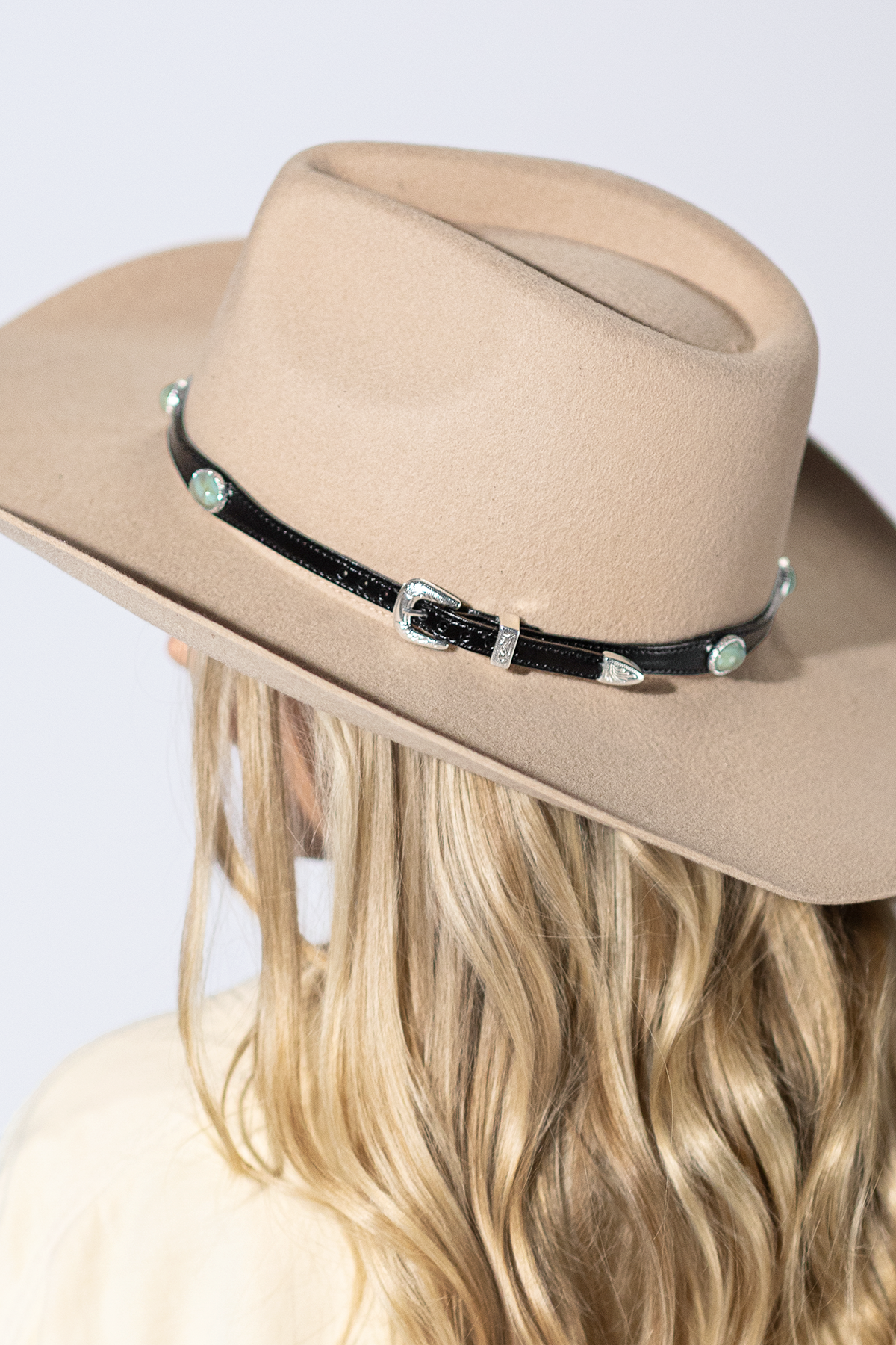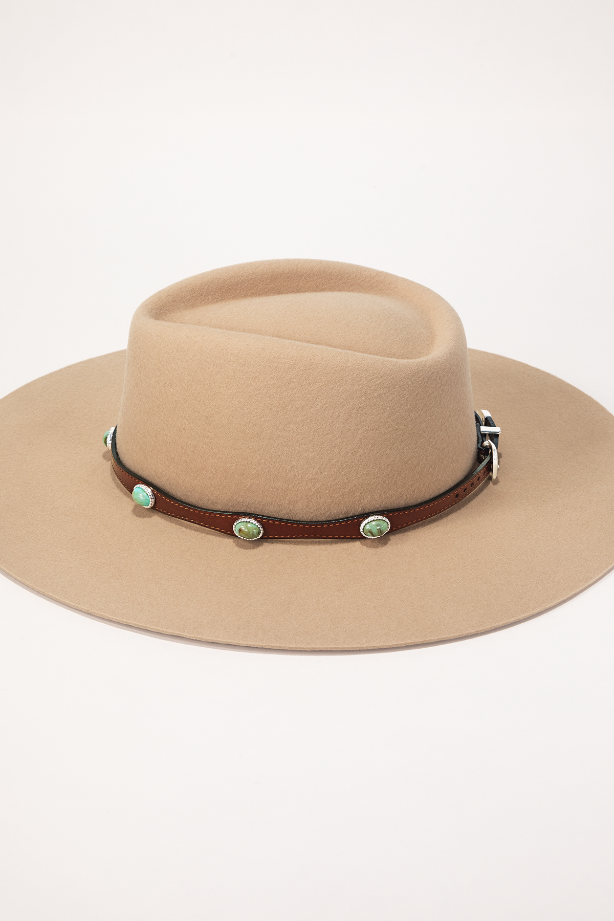 A nod to classic Southwestern style with a retro twist. Crafted from rich leather and accented with stones that catch the light. Timeless, bold, and made to turn any hat into a statement piece.