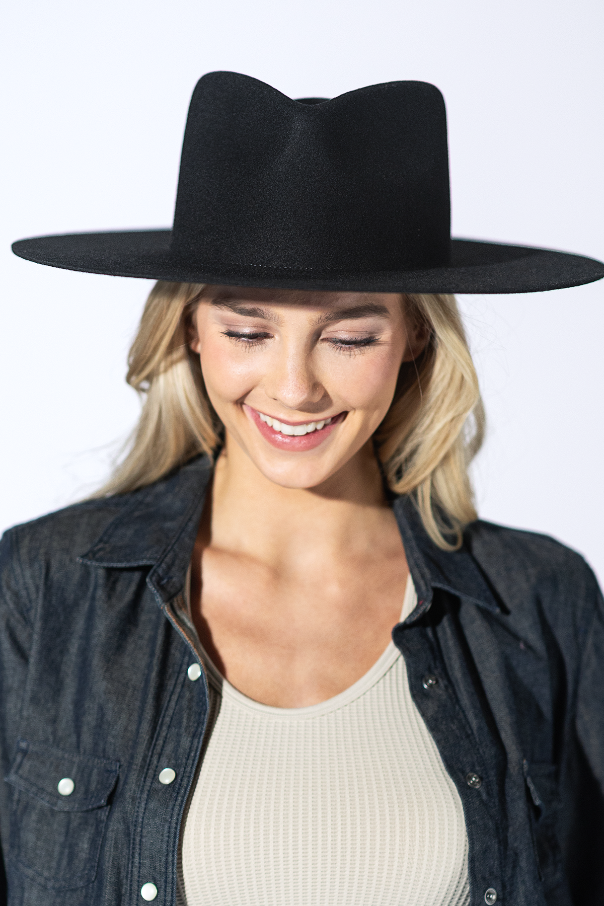 100% Australian wool hard brim Panama hat with a wide teardrop Crown shape & inner adjustable strap