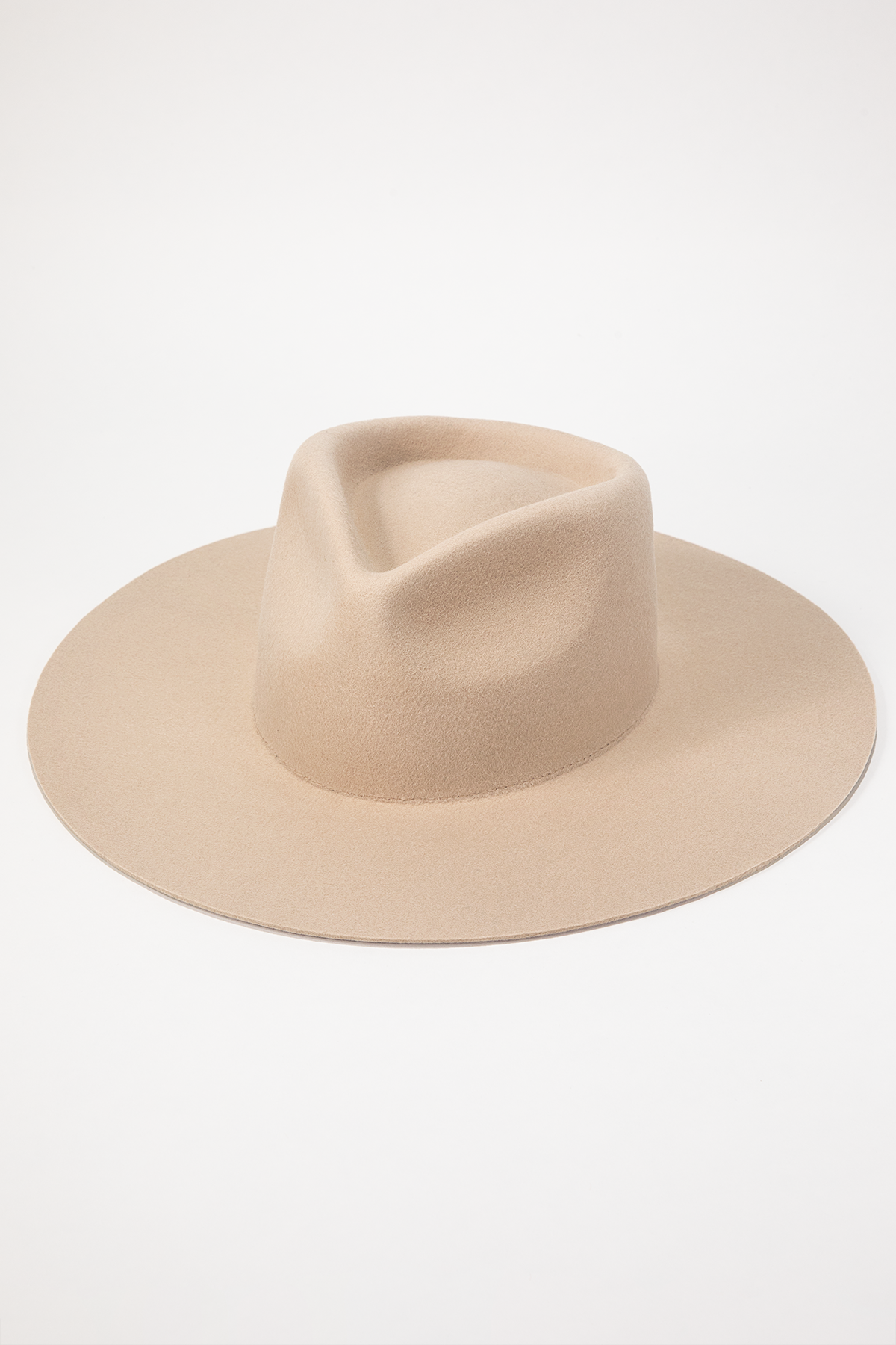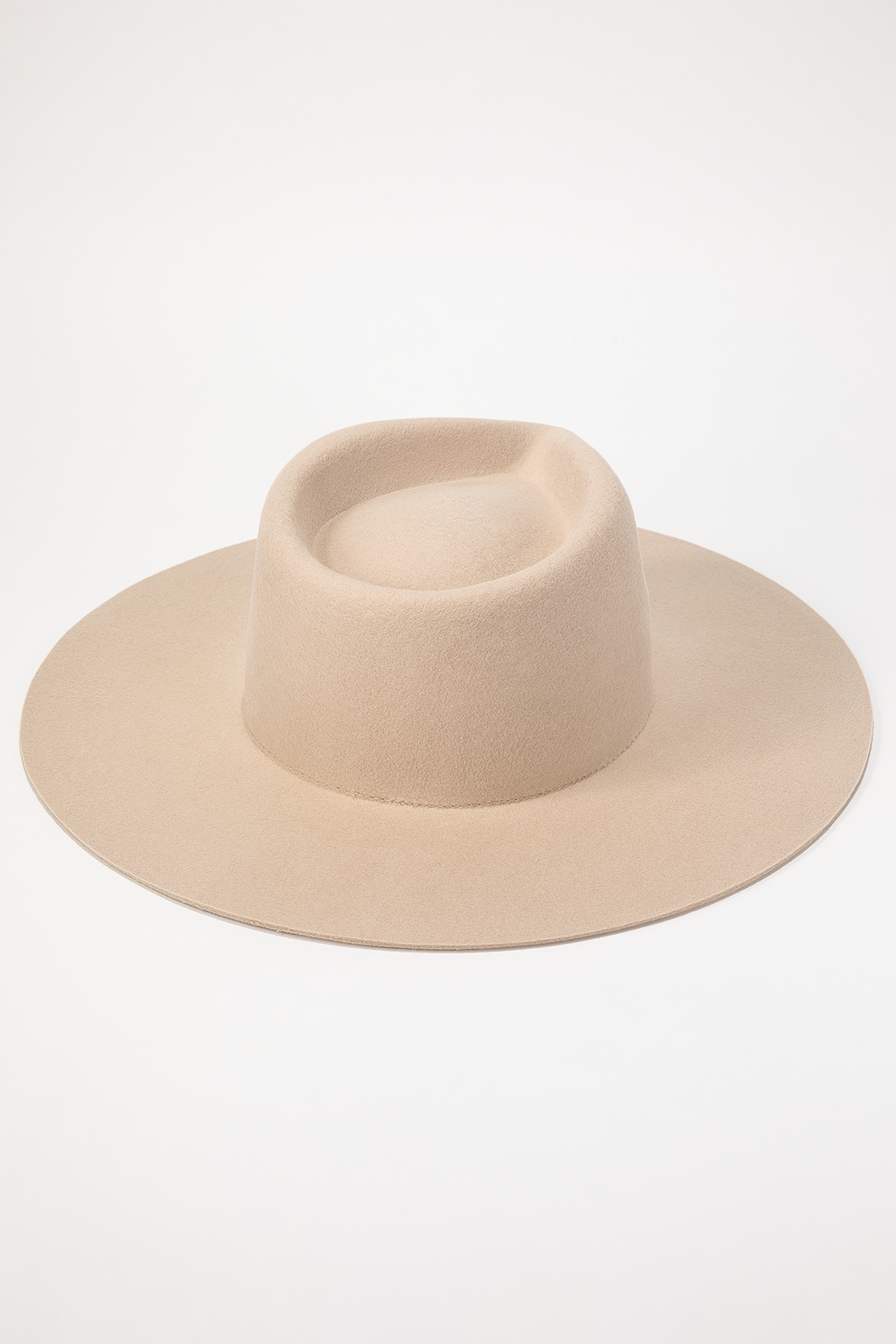 100% Australian wool hard brim Panama hat with a wide teardrop Crown shape & inner adjustable strap