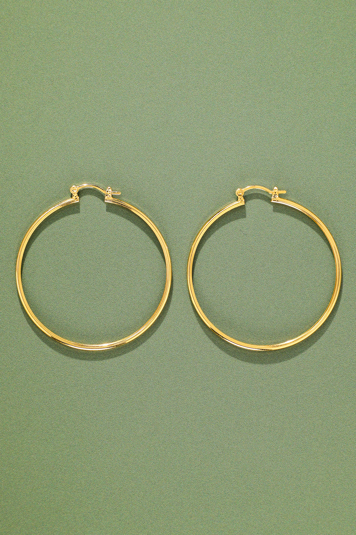 Refined and radiant. These thin, medium-sized hoops are 18K gold-filled and effortlessly elegant. Lightweight, hypoallergenic, and designed to add just the right touch of shine.