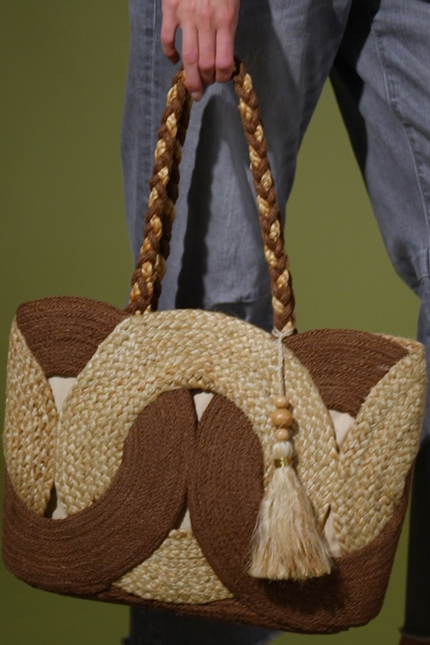 This woven jute shoulder bag brings laid-back beach vibes to any setting—even when you're far from the shore. Its elegant circular design paired with beautifully braided straps offers durability with effortless style. Perfect for weekend getaways or your everyday routine, this bag infuses a touch of coastal charm into your look. Enjoy a versatile accessory that effortlessly blends practicality with a relaxed, breezy aesthetic wherever you roam.