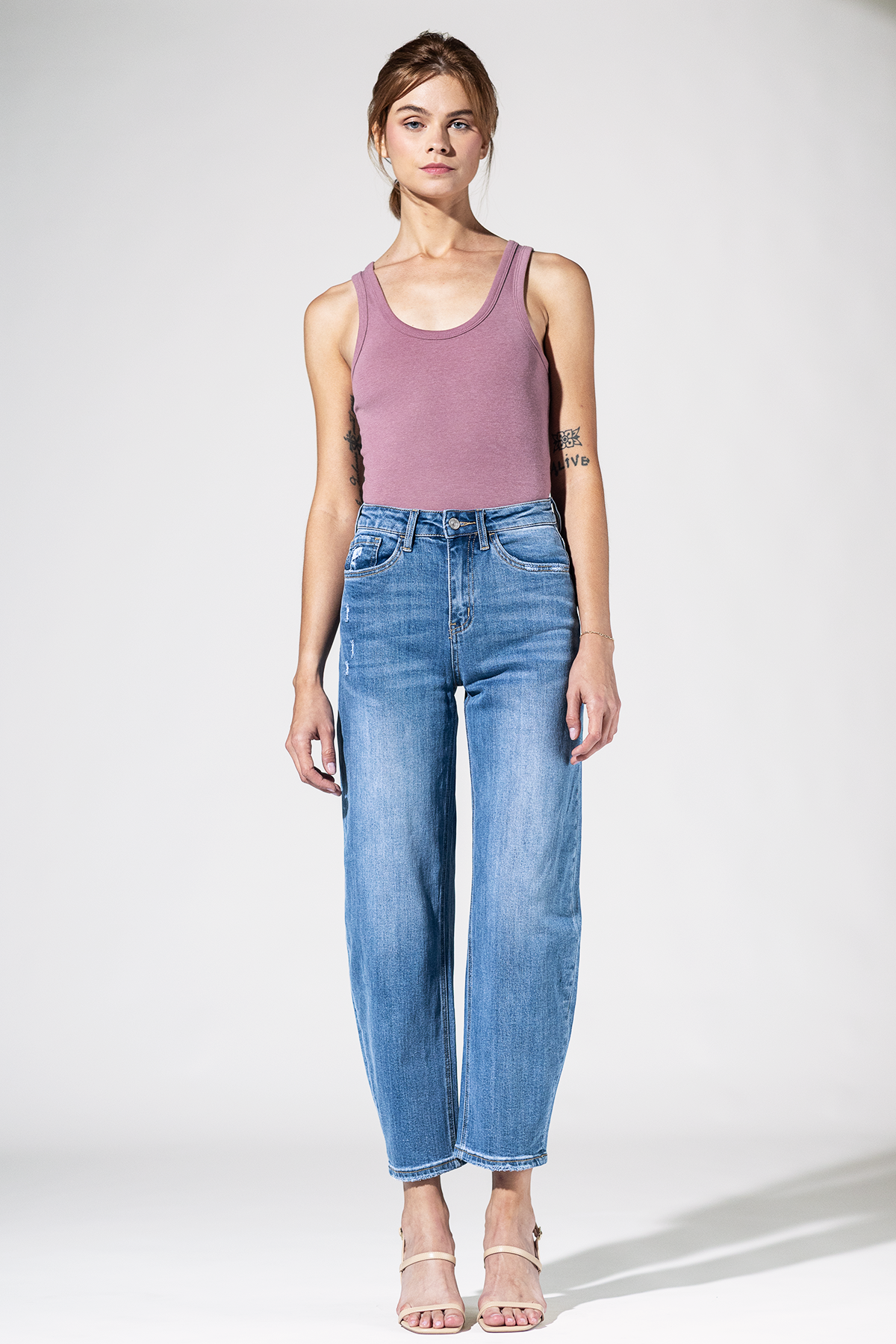Retro Rodeo Barrel Jeans bring a touch of the Southwest with a polished twist. Bold, and camera-ready with a relaxed barrel leg and a worn-in wash. These are the kind of jeans you’d throw on for brunch in Austin or a shoot in the hills.