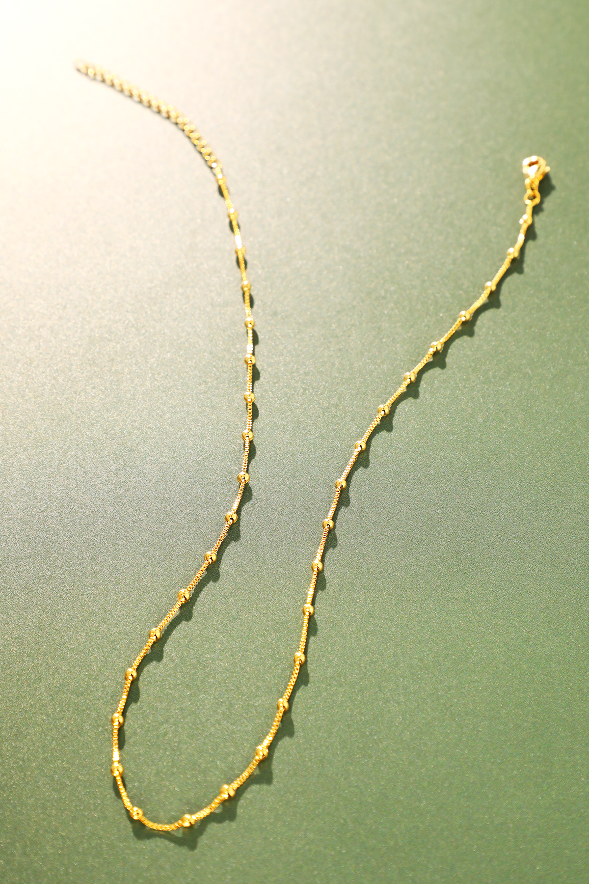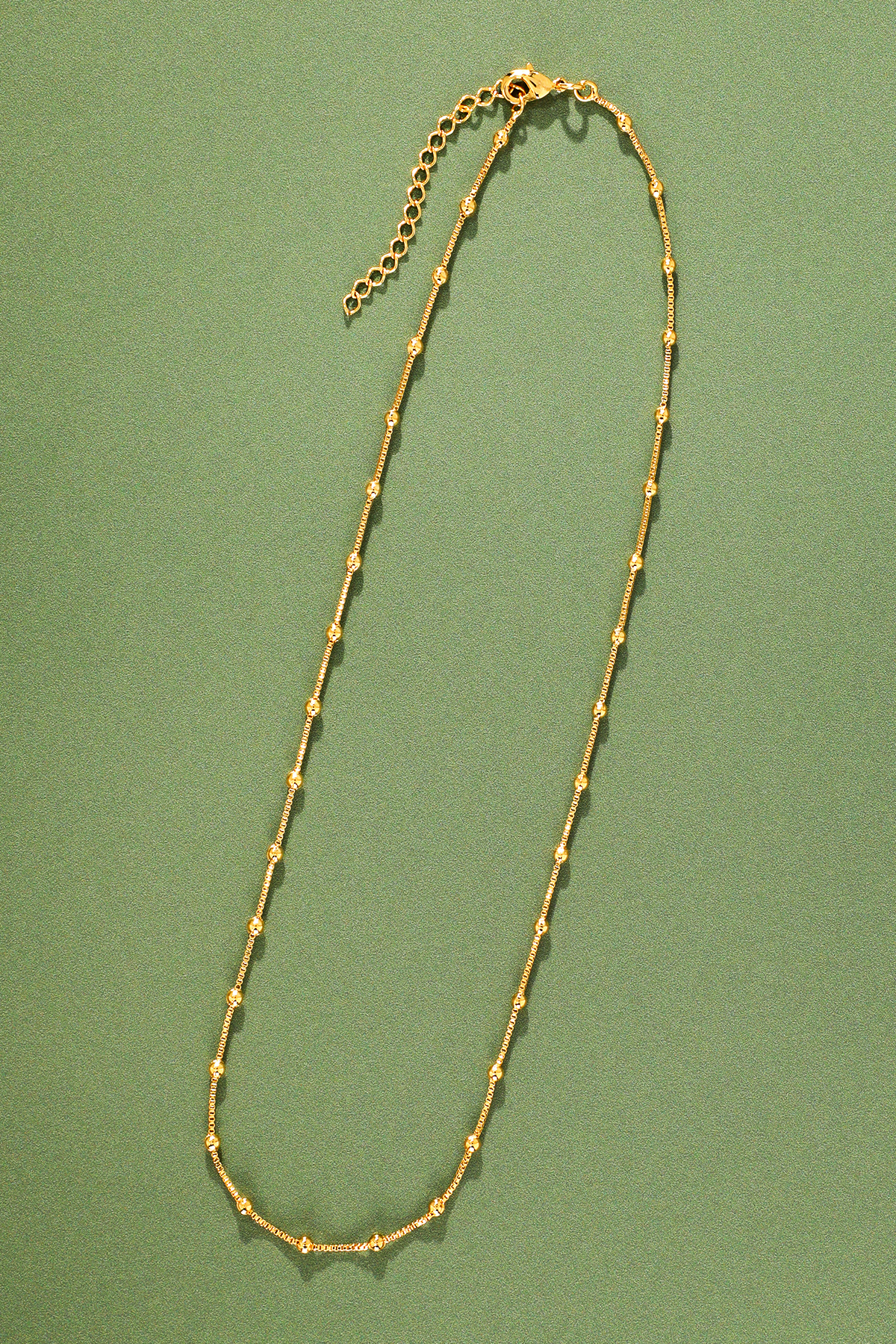 Delicate but striking. This bead-accented gold-filled chain layers effortlessly with your favorites or makes a subtle statement on its own. Simple, refined, and made to shine.
