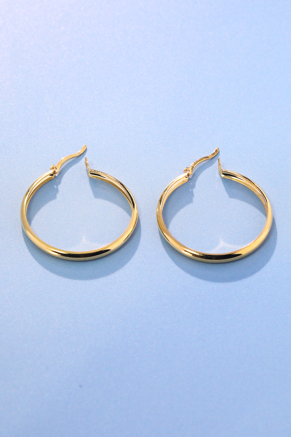 Lightweight, sleek, and made to shine. These large 18K gold-filled hoops feature a thin, polished silhouette that feels timeless yet bold. Hypoallergenic and easy to style with everything.