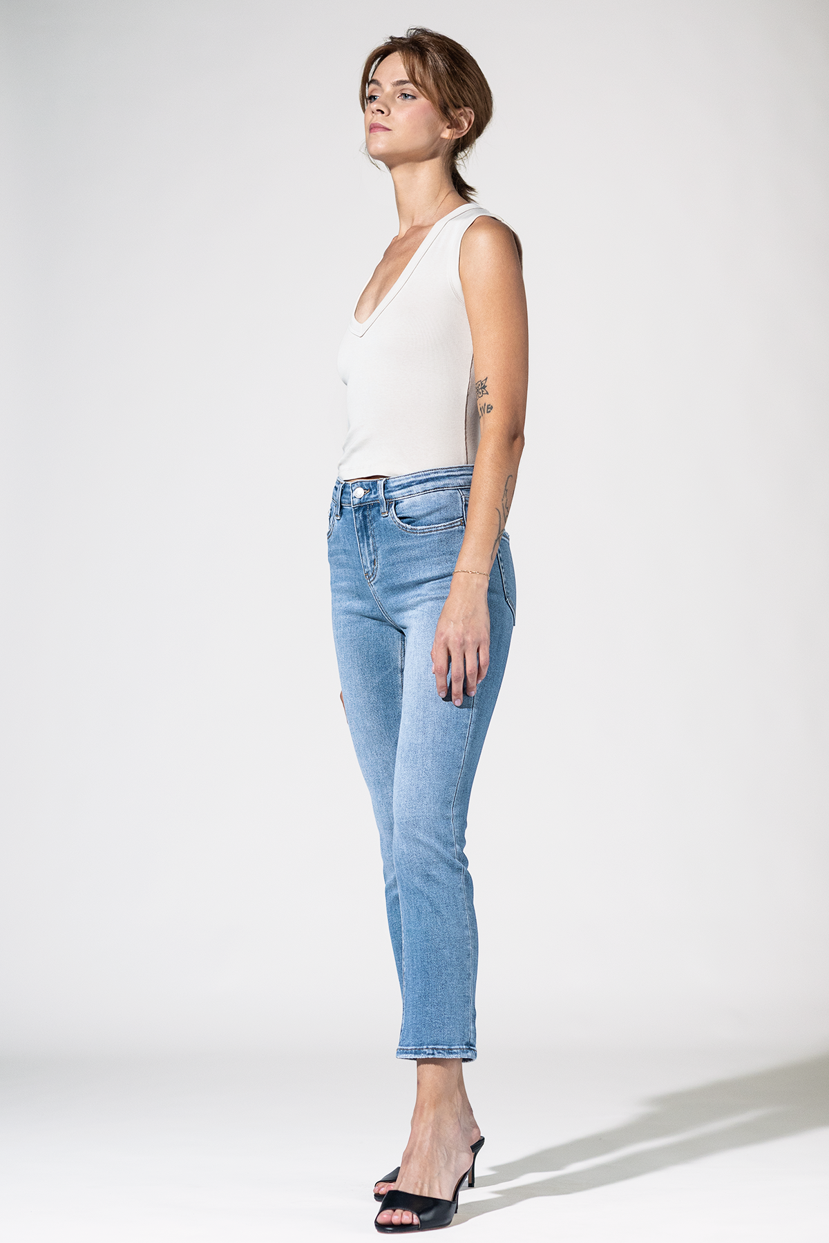 An everyday denim with coastal charm. These high rise jeans feature a flattering slim fit and light fading for a lived-in look. Perfect with sandals or a strappy heel.